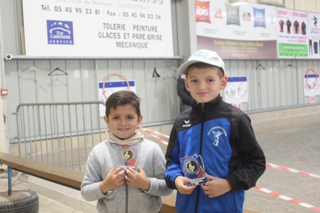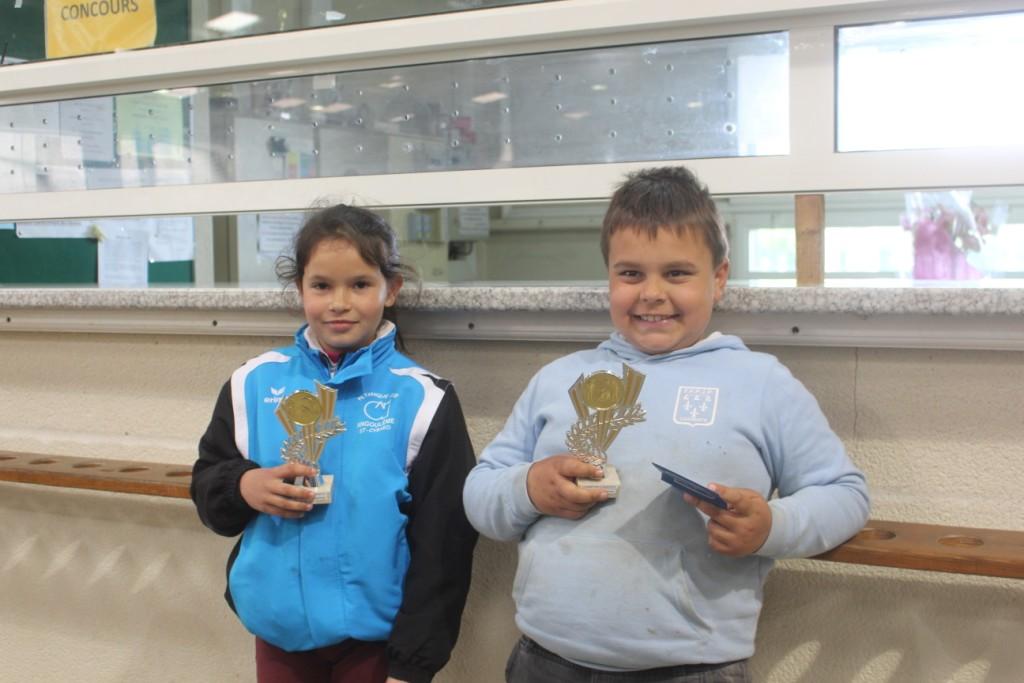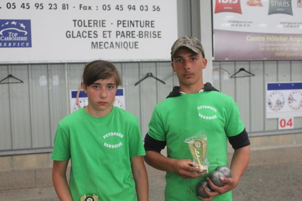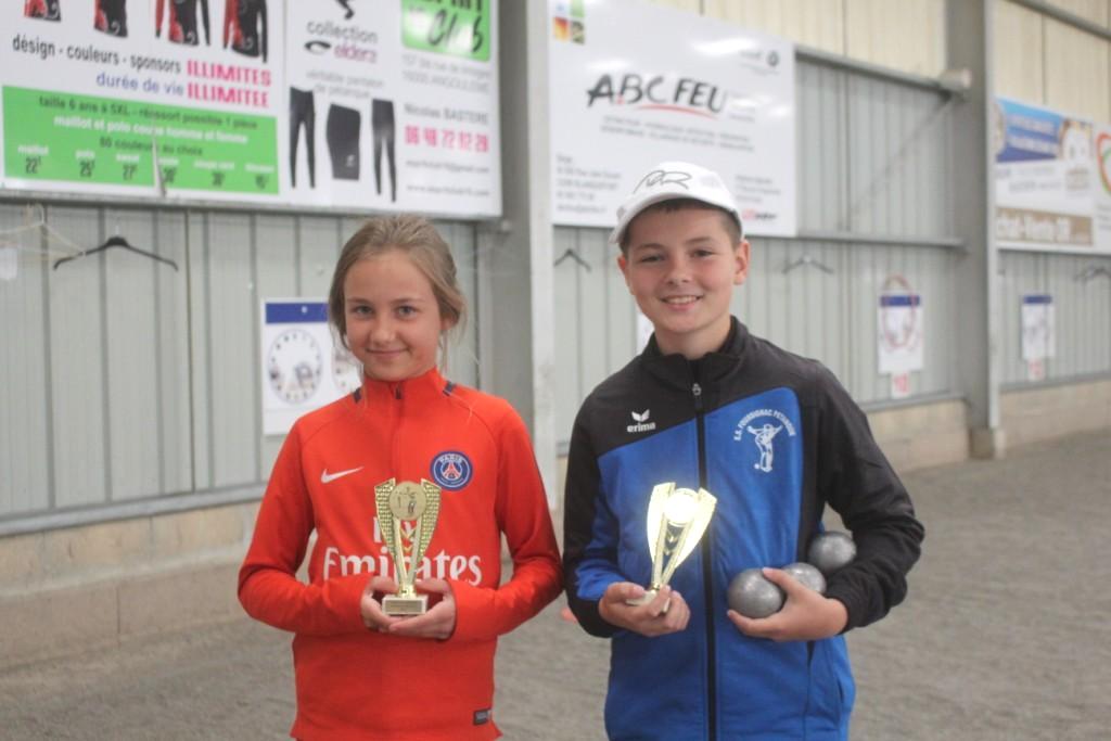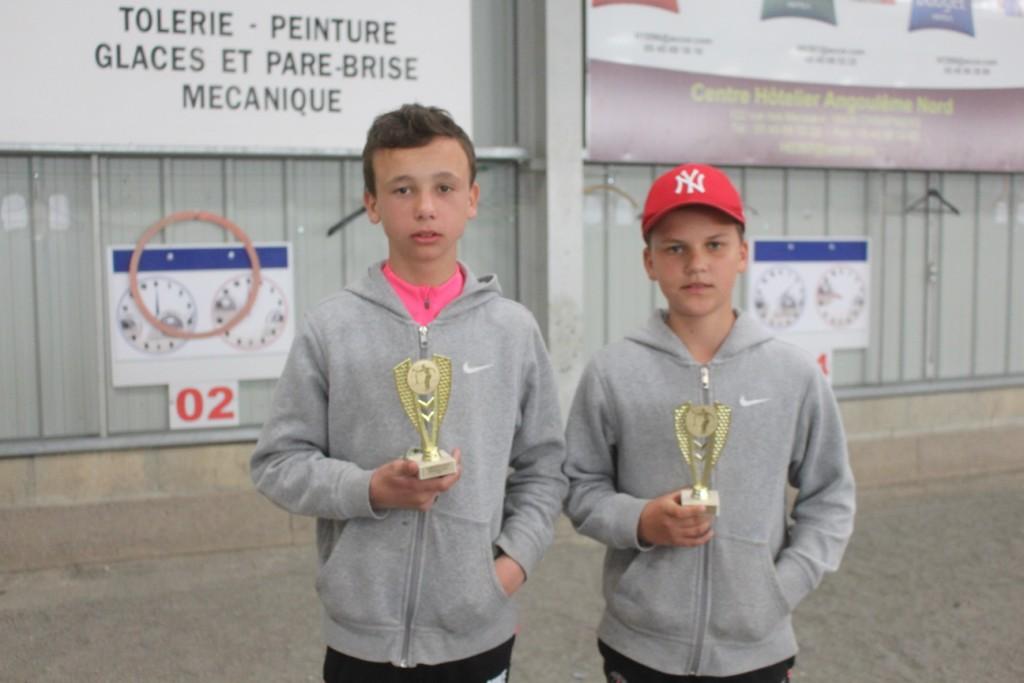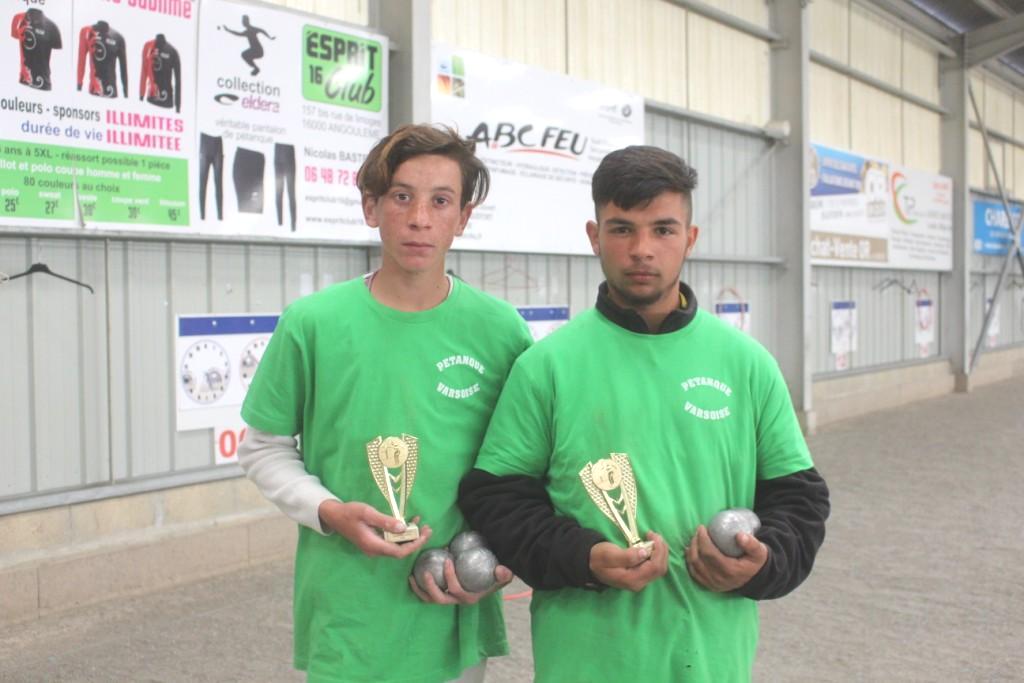 Vainqueurs Doublettes Benjamin LAPLAGNE Chloe, SEINE Enzo de ANG. SAINT CYBARD et CHASSENEUIL |