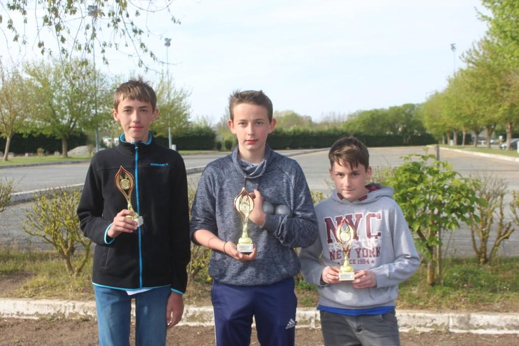 Finalistes Doublettes Benjamin : LOUSTALOT Zahyishan, OUVRAI Ethan de RUELLE et FOUSSIGNAC |