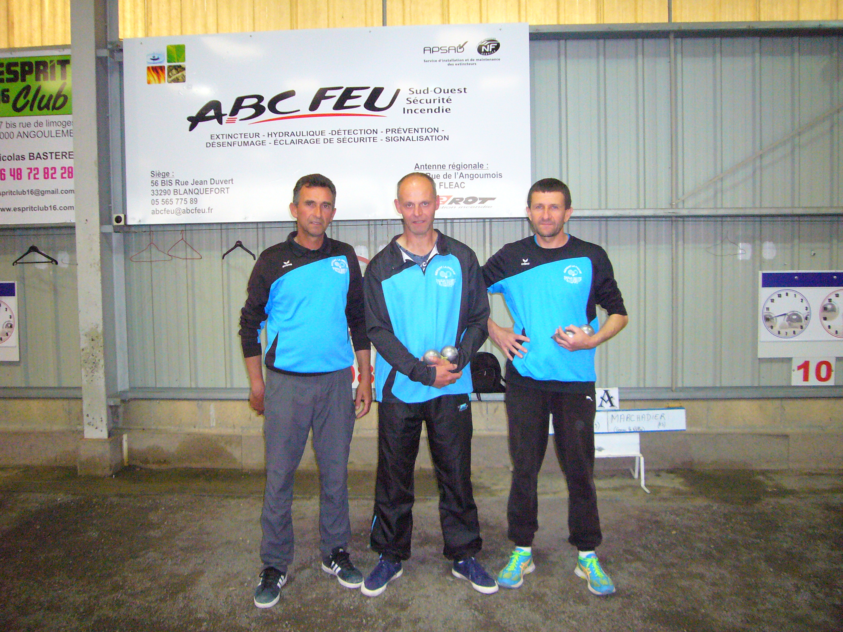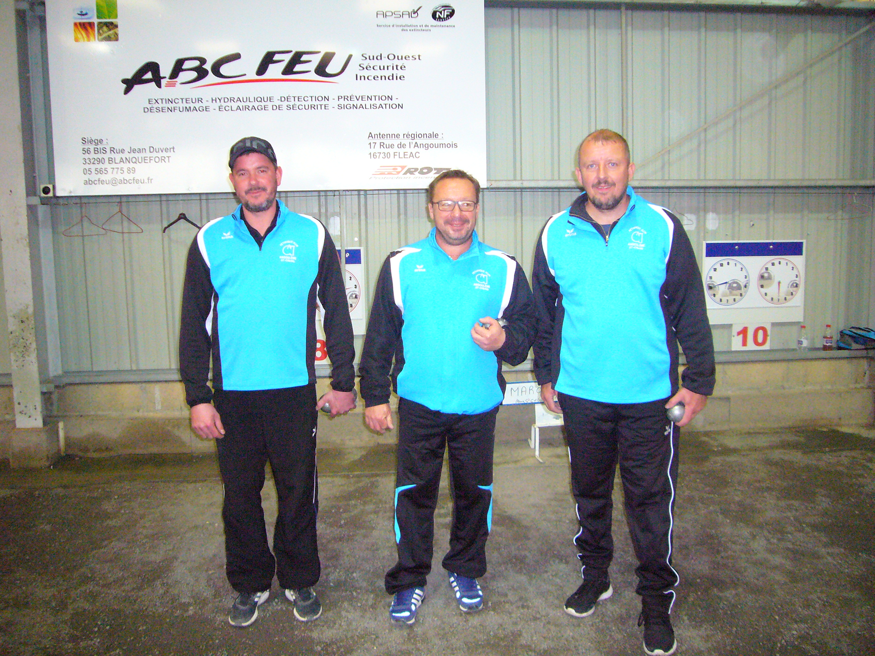 VainqueursTriplettes Seniors MAROT Aurélien, MONROUX David, BUREAU Franck de ANGOULEME ST-CYBARD |